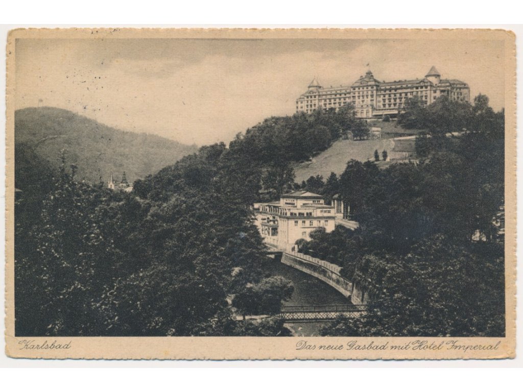 25 - Karlovy Vary (Karlsbad), pohled na lázně a hotel Imperial, cca 1929