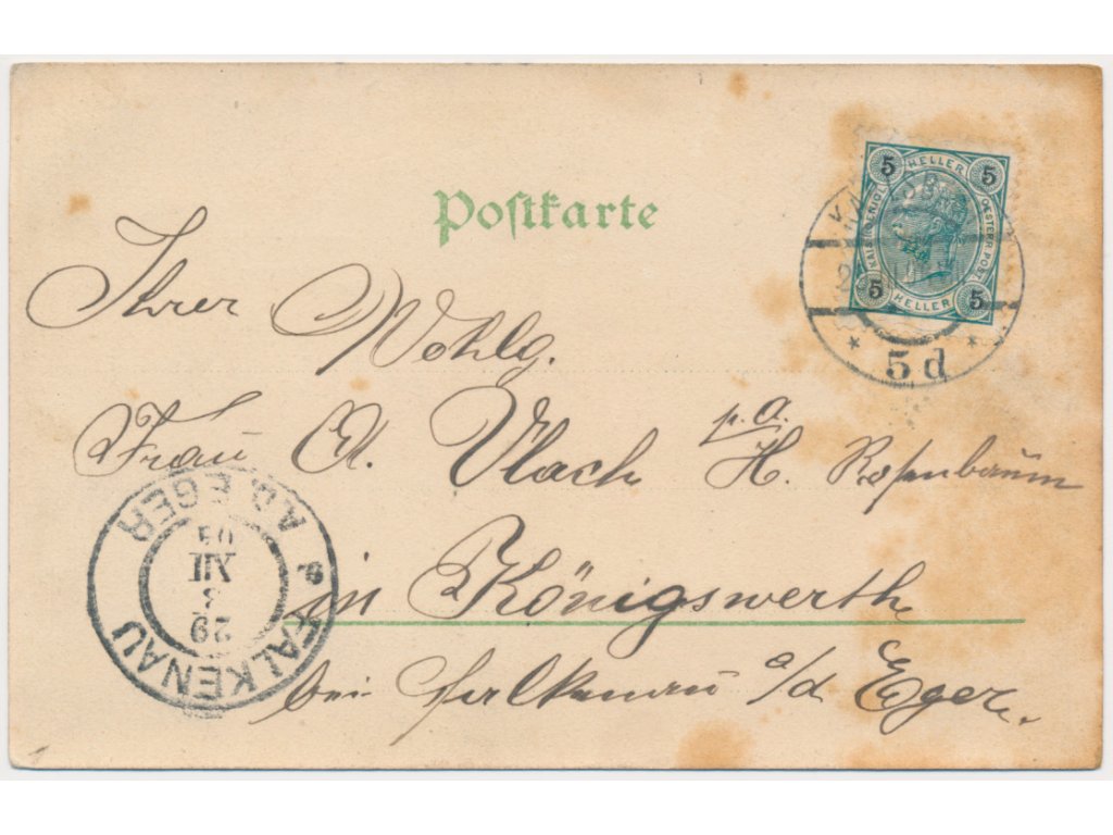 25 - Karlovy Vary (Karlsbad), Sprudel Colonnade, tzv. Světelná pohlednice, Při pohledu proti světlu svítí všechny okna, cca 1904