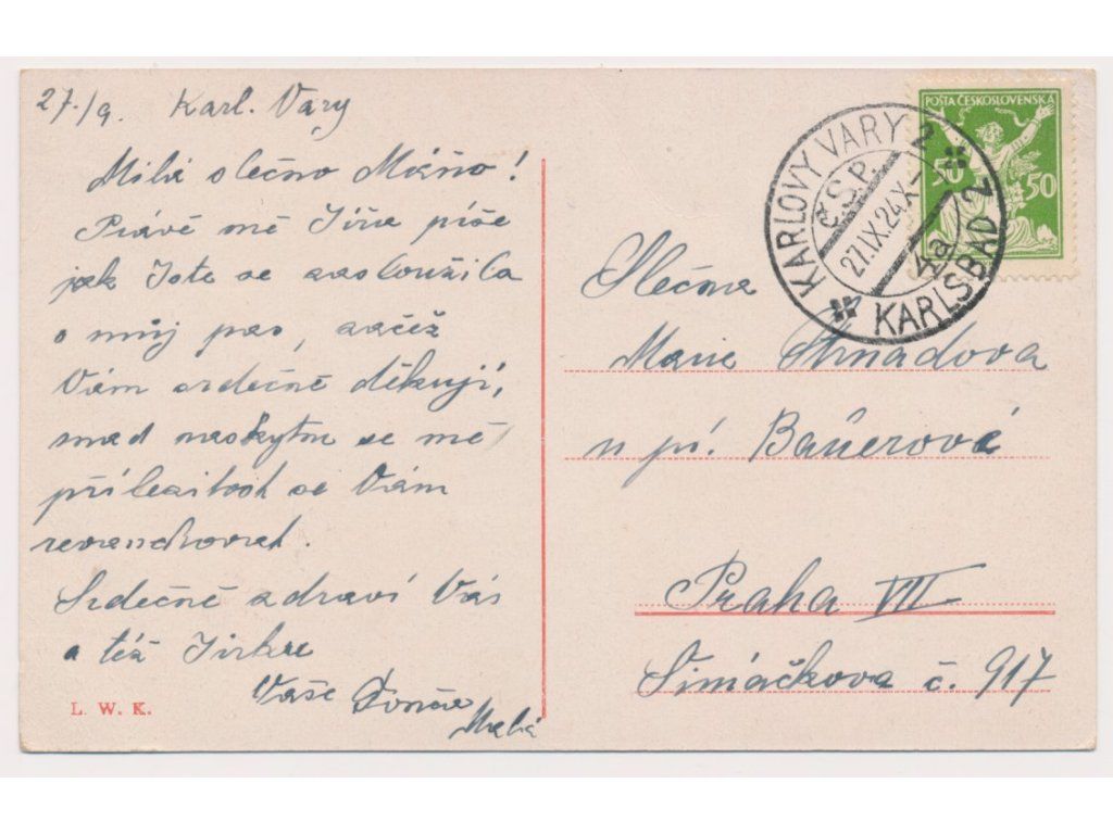 25 - Karlovy Vary (Karlsbad), Stará louka, prošlá poštou 1924