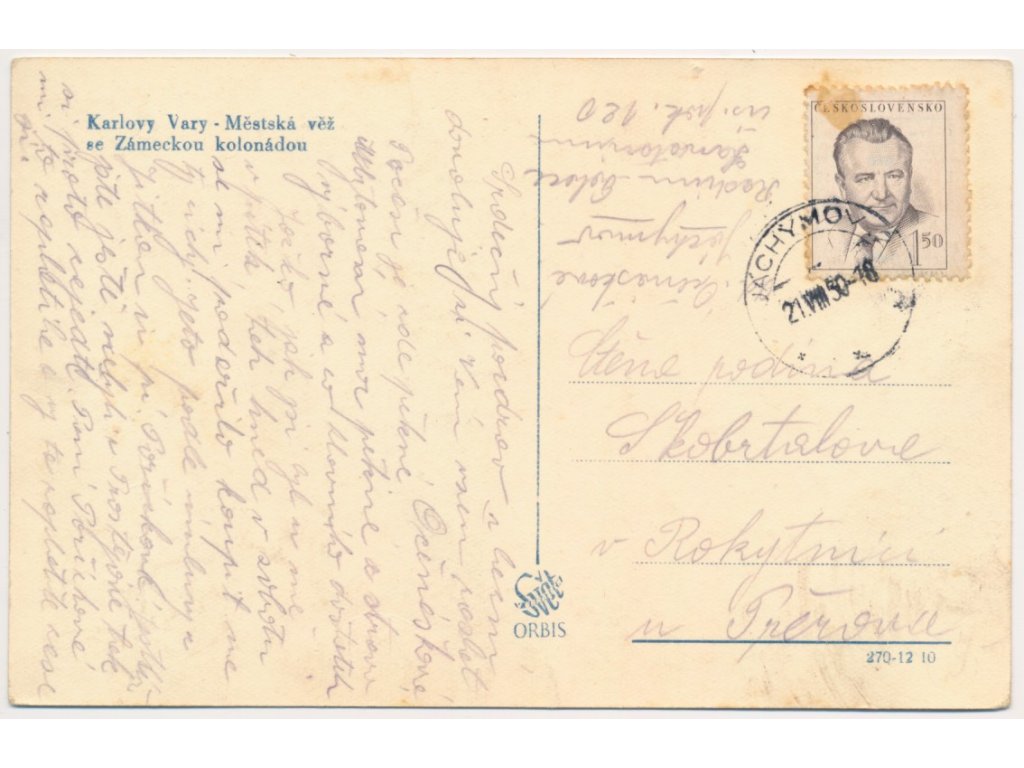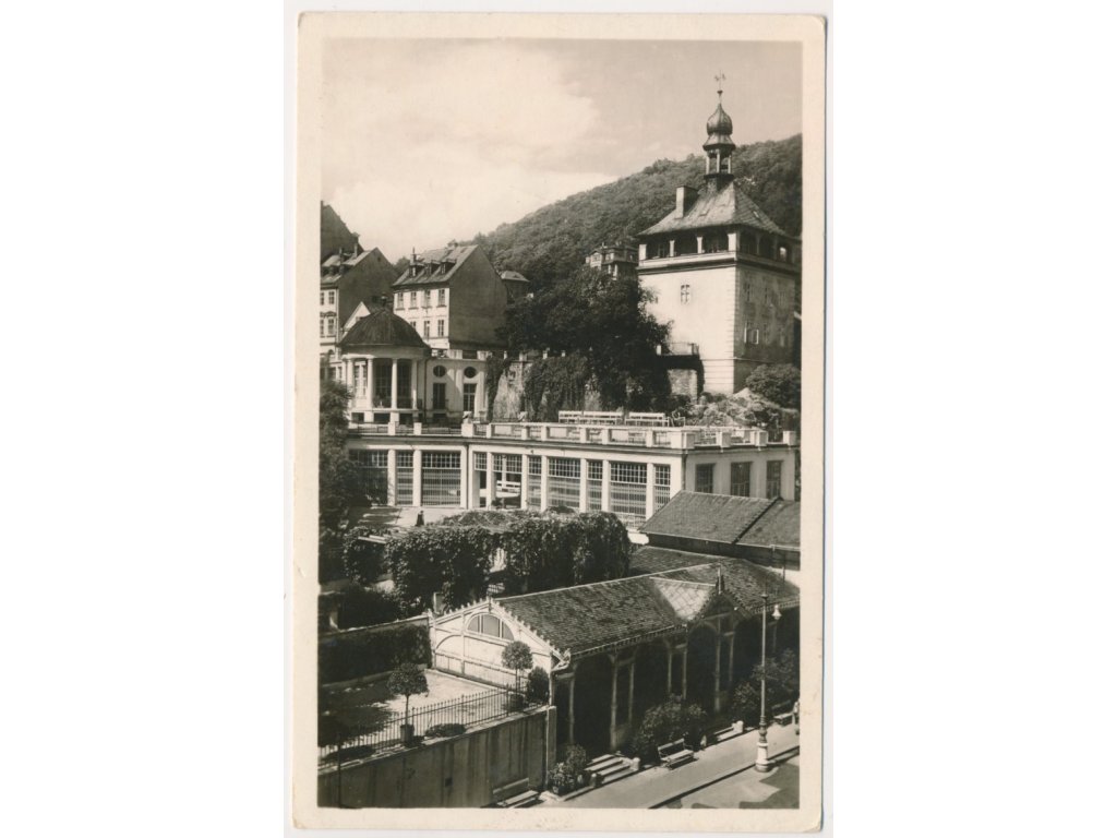 25 - Karlovy Vary, Městská věž se Zámeckou kolonádou, cca 1950