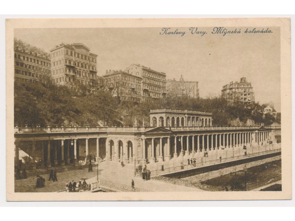 25 - Karlovy Vary, Oživená Mlýnská kolonáda, cca 1925