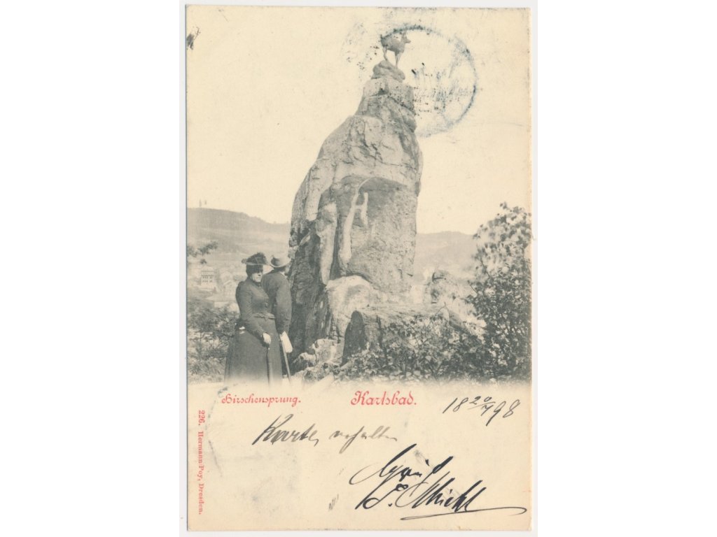 25 - Karlovy Vary, (Karlsbad), Jelení skok, oživená partie, cca 1898