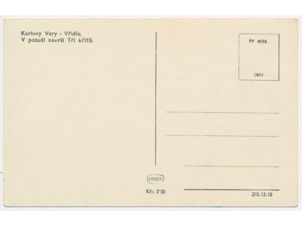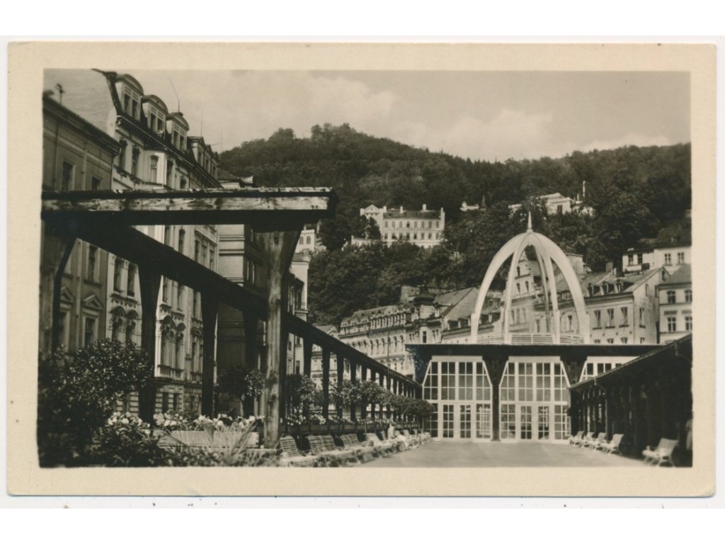 25 - Karlovy Vary, Vřídlo, V pozadí návrší Tří křížů, cca 1950