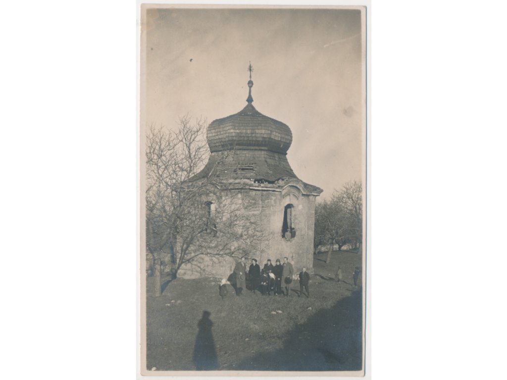 27 - Kladensko, Pchery, oživená partie u barokní zvonice, cca 1920