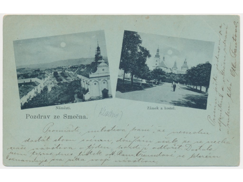 27 - Kladensko, Smečno, 2 záběr, Náměstí, Zámek a kostel, cca 1899