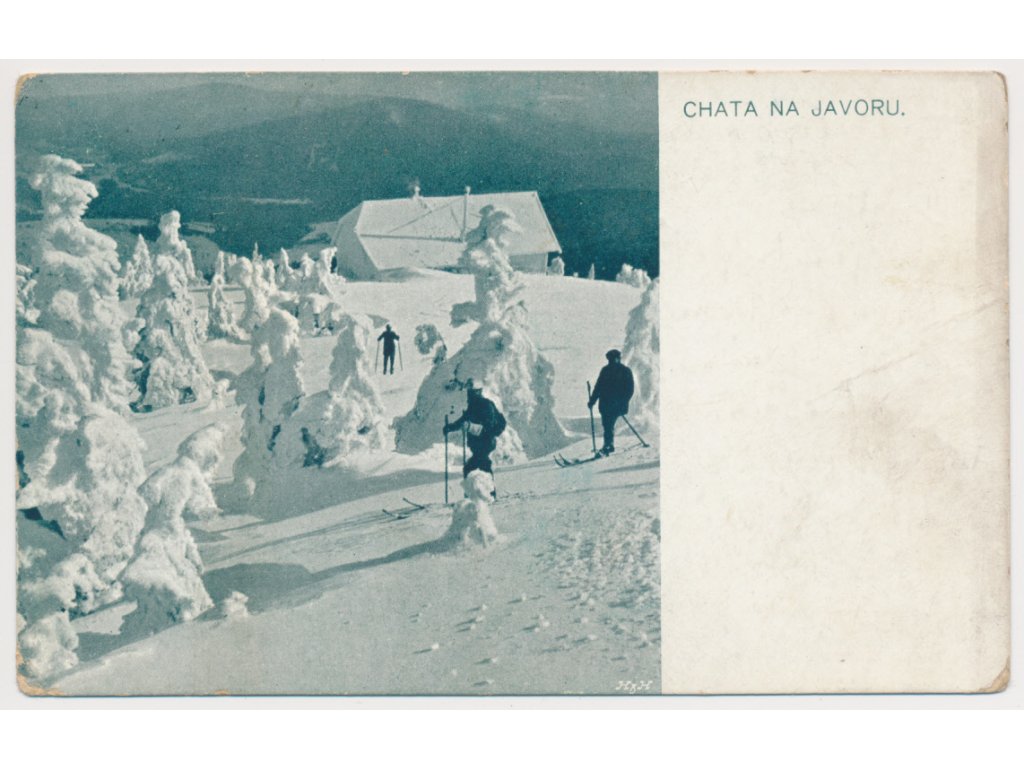 28 - Klatovsko, oživená zimní partie, "Chata na Javoru", cca 1905