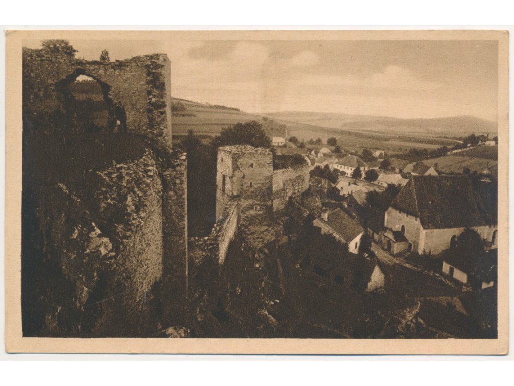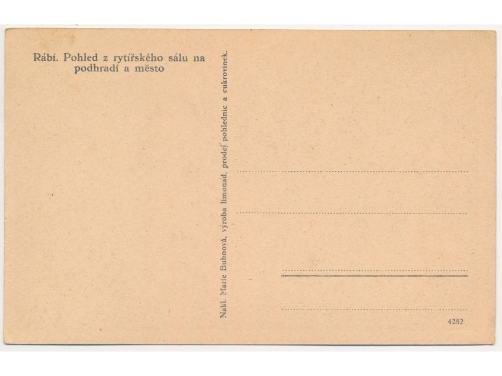 28 - Klatovsko, Rábí, Pohled z rytířského sálu na podhradí a město, cca 1922