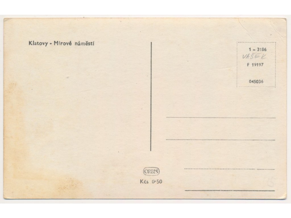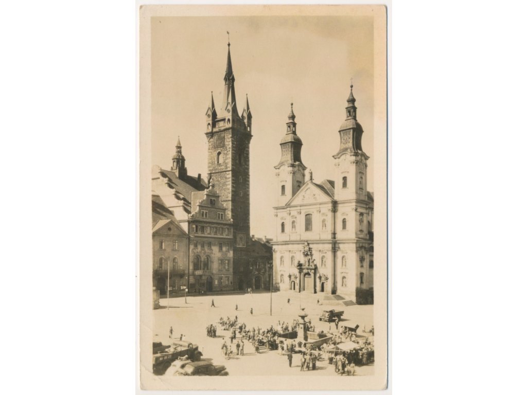 28 - Klatovy, oživené Mírové náměstí, cca 1950