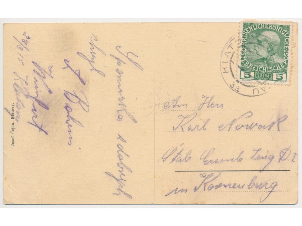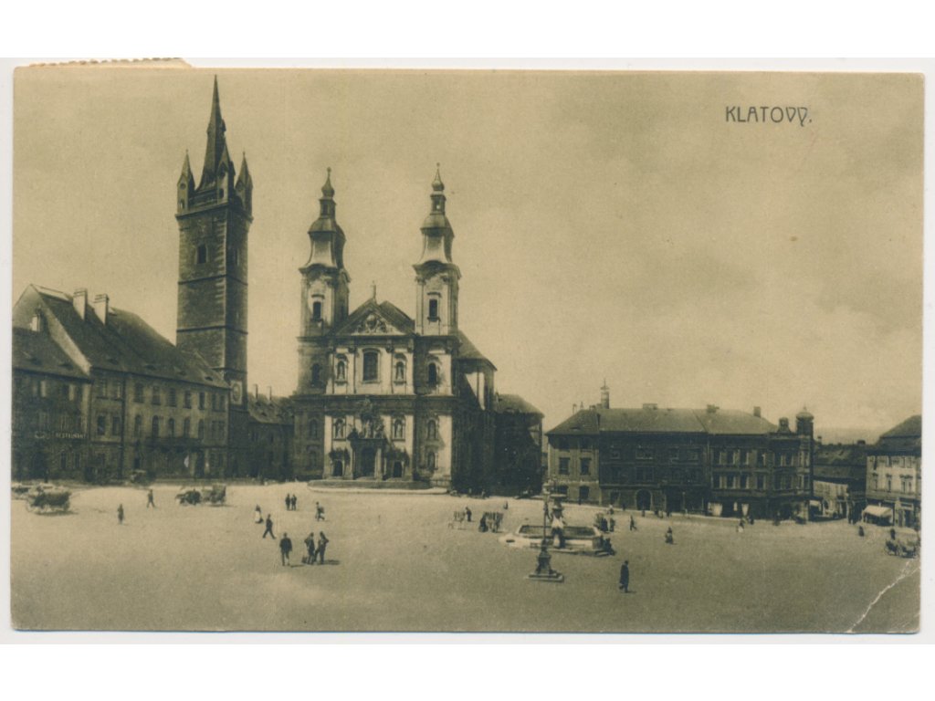 28 - Klatovy, partie z oživeného náměstí, cca 1916, vada - lom v růžku