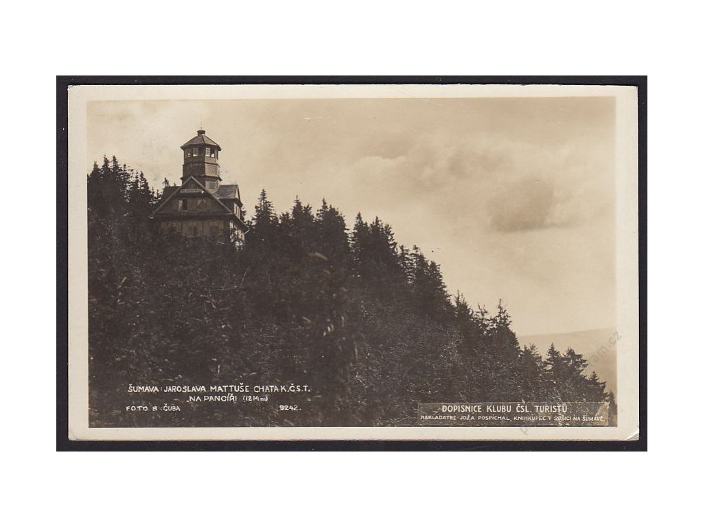 28 - Šumava, Pancíř, Jaroslava Matuše chata K. ČS. T., foto Fon, cca 1929