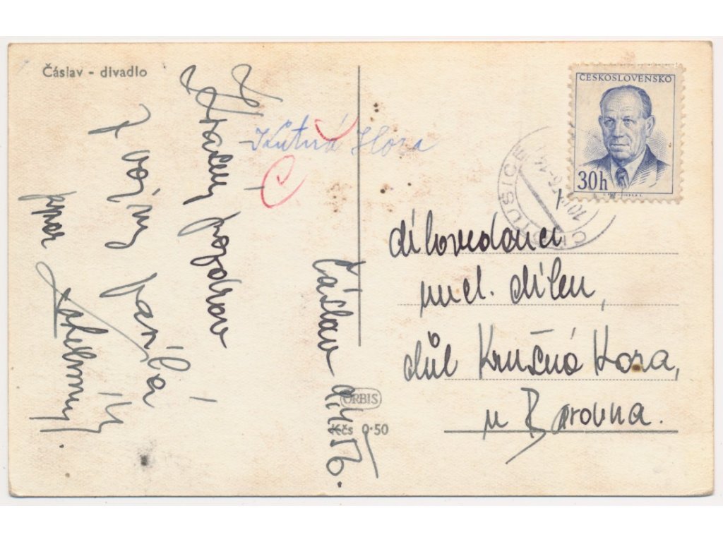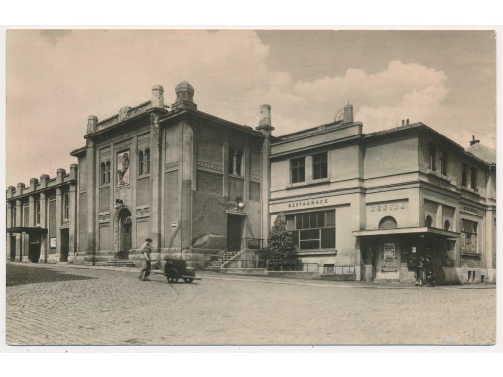 31 - Kutnohorsko, Čáslav, oživená partie před divadlem, Restaurace, 1956