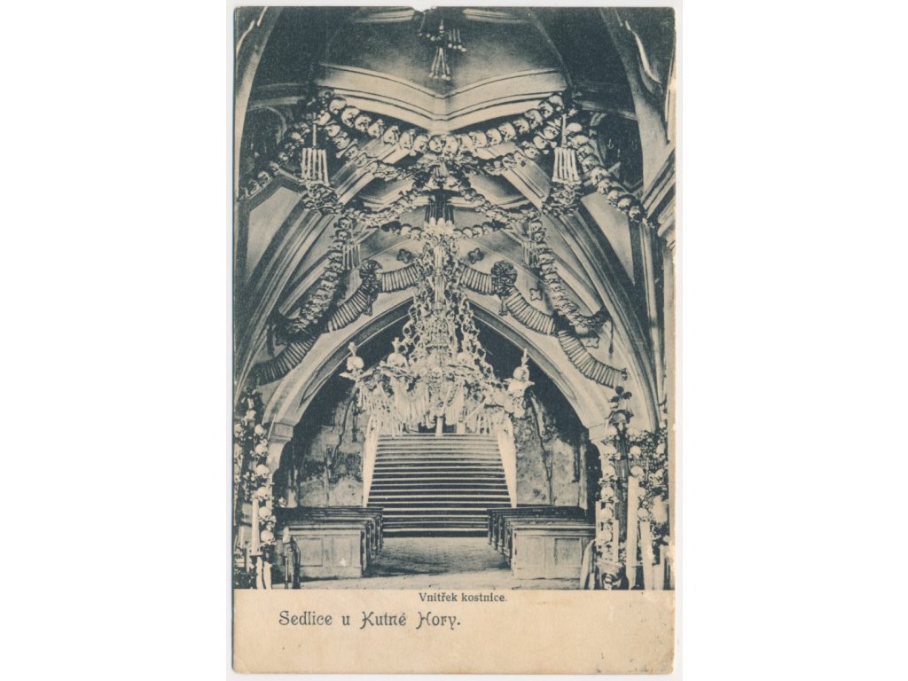 31 - Kutnohorsko, Sedlec, vnitřek kostnice, cca 1914