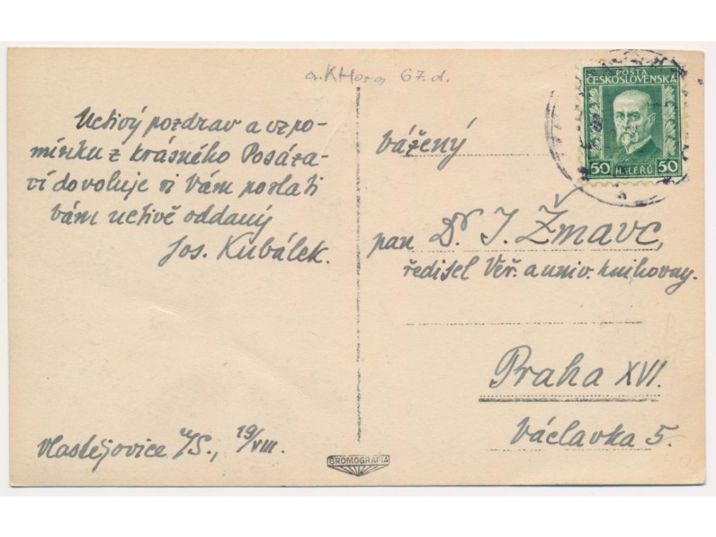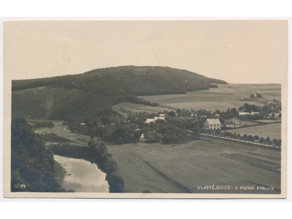 31 - Kutnohorsko, Vlastějovice, celkový pohled, v pozadí Fiolník, cca 1928