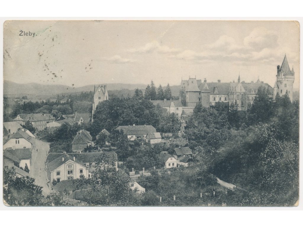 31 - Kutnohorsko, Žleby, celkový pohled na obec a zámek, cca 1910