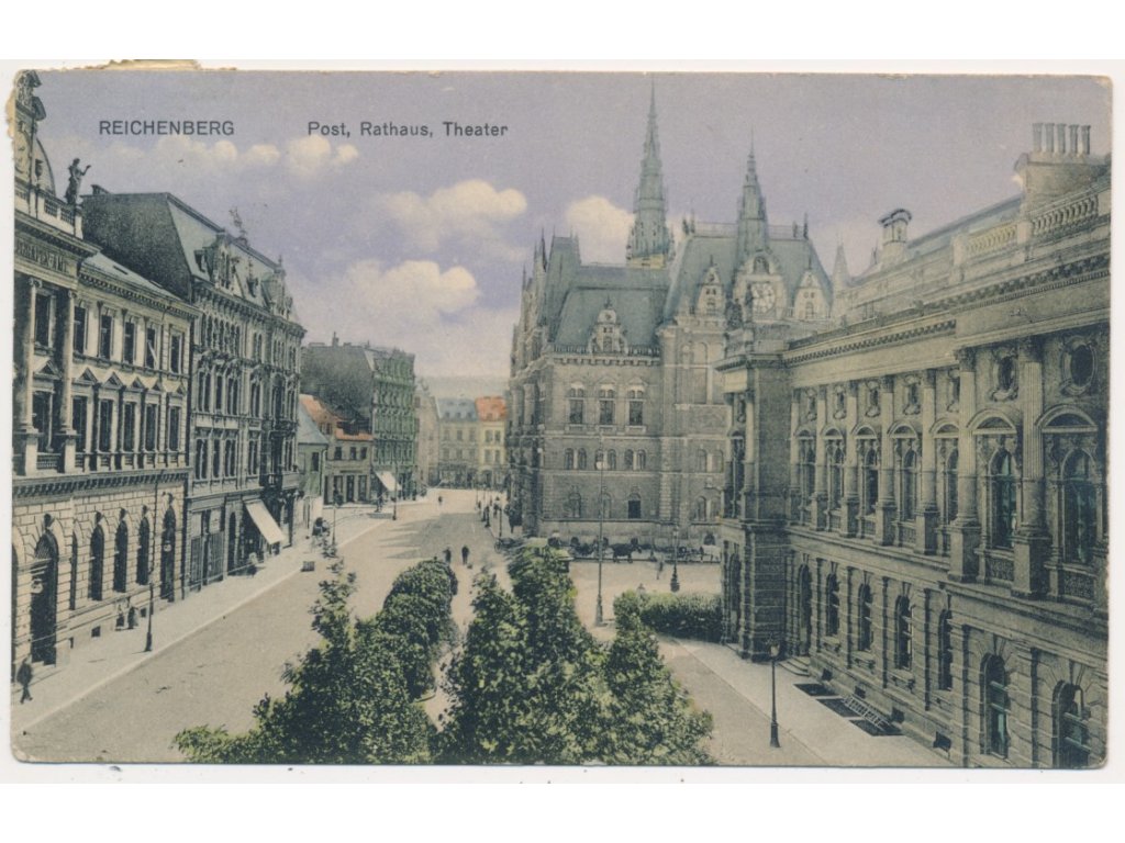 32 - Liberec (Reichenberg), Pošta, Radnice, Divadlo..., cca 1910