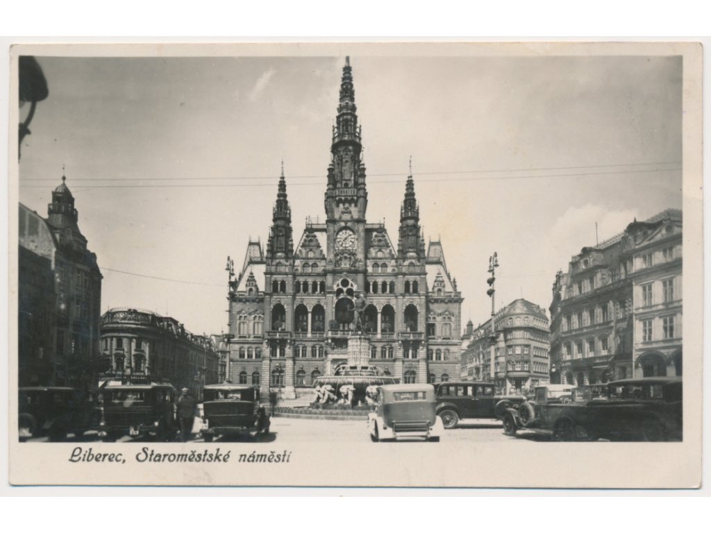 32 - Liberec, Staroměstské náměstí s automobily, cca 1945