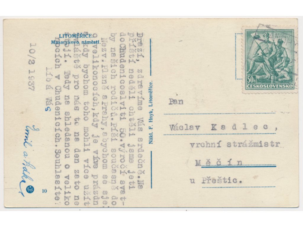 33 - Litoměřice, oživené Masarykovo náměstí, cca 1937