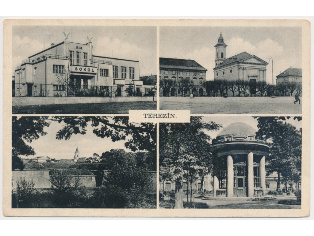 33 - Litoměřicko, Terezín, 4 záběr dominant města, mj. Sokol, náměstí..., 1936