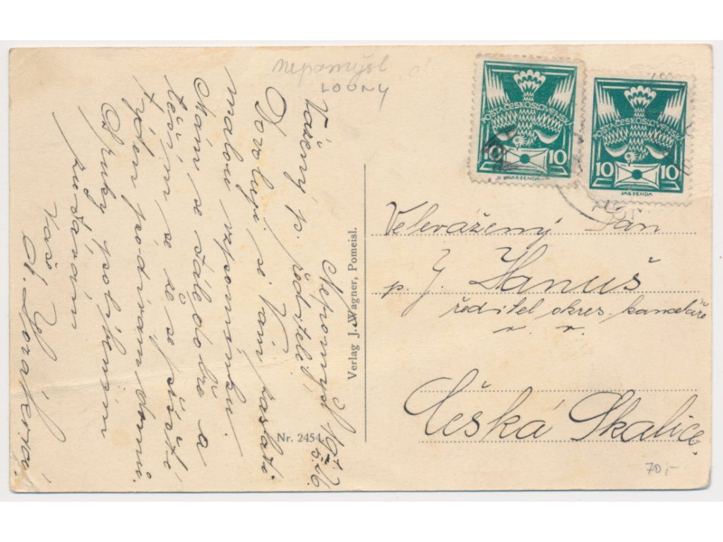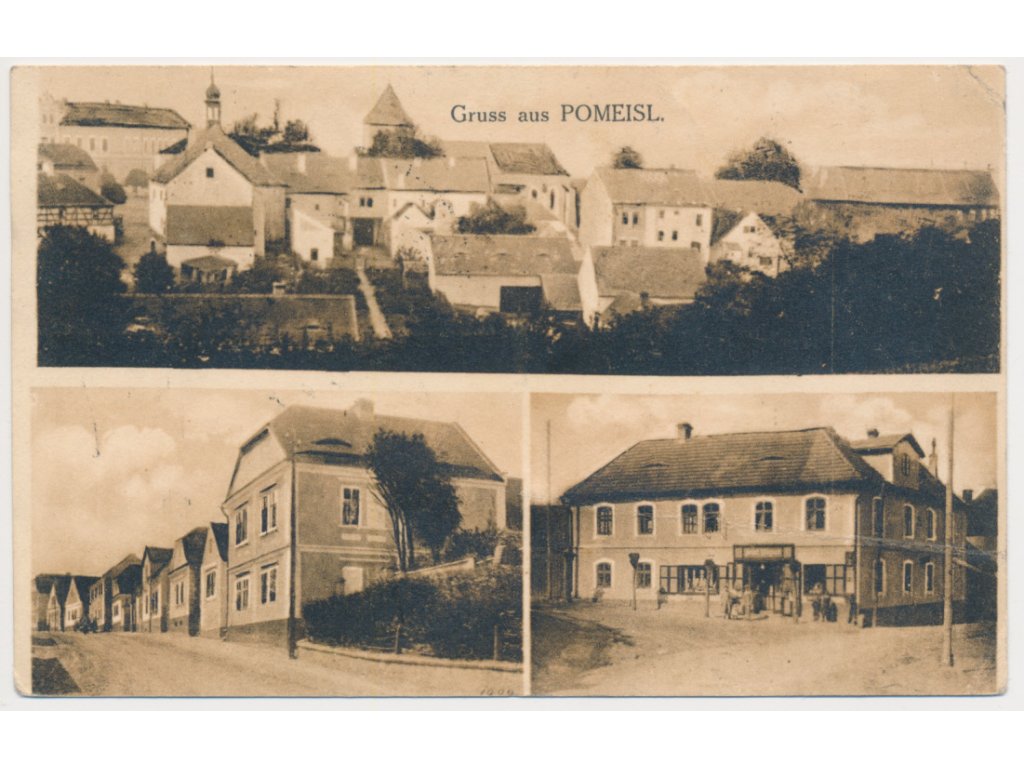 34 - Lounsko, Nepomyšl (Pomeisl), 3 záběr dominant, mj. obchod, 1926