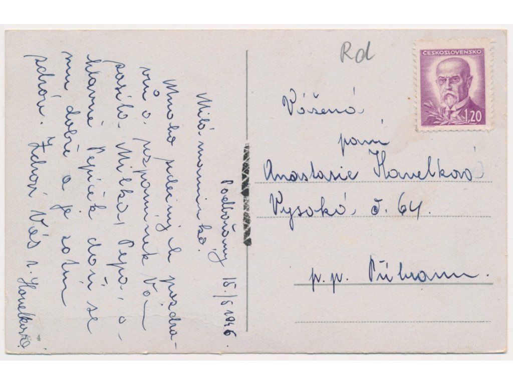 pohlednice prošlá poštou, stav odpovídá použití, uložení a stáří