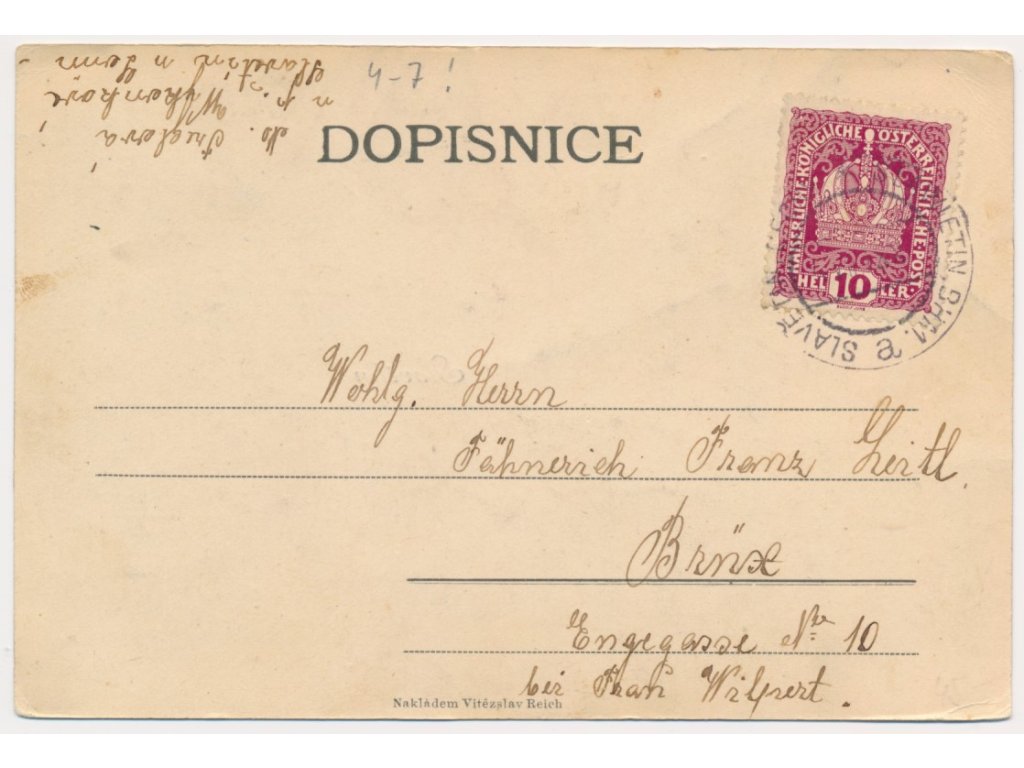 pohlednice prošlá poštou, stav odpovídá použití, uložení a stáří