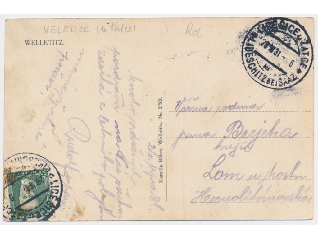 pohlednice prošlá poštou, stav odpovídá použití, uložení a stáří
