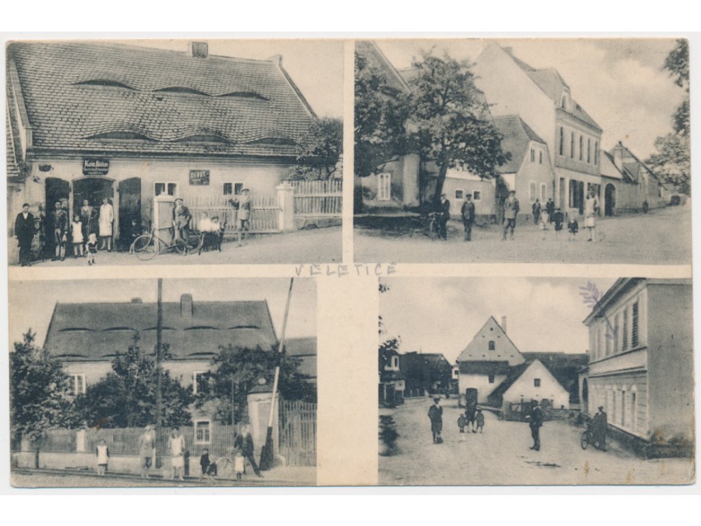 34 - Lounsko, Veletice, 4 - záběr, oživené partie na návsi před domy, cca 1931