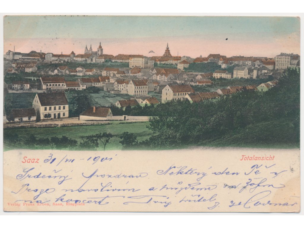 34 - Lounsko, Žatec (Saaz), celkový pohled na město, cca 1901