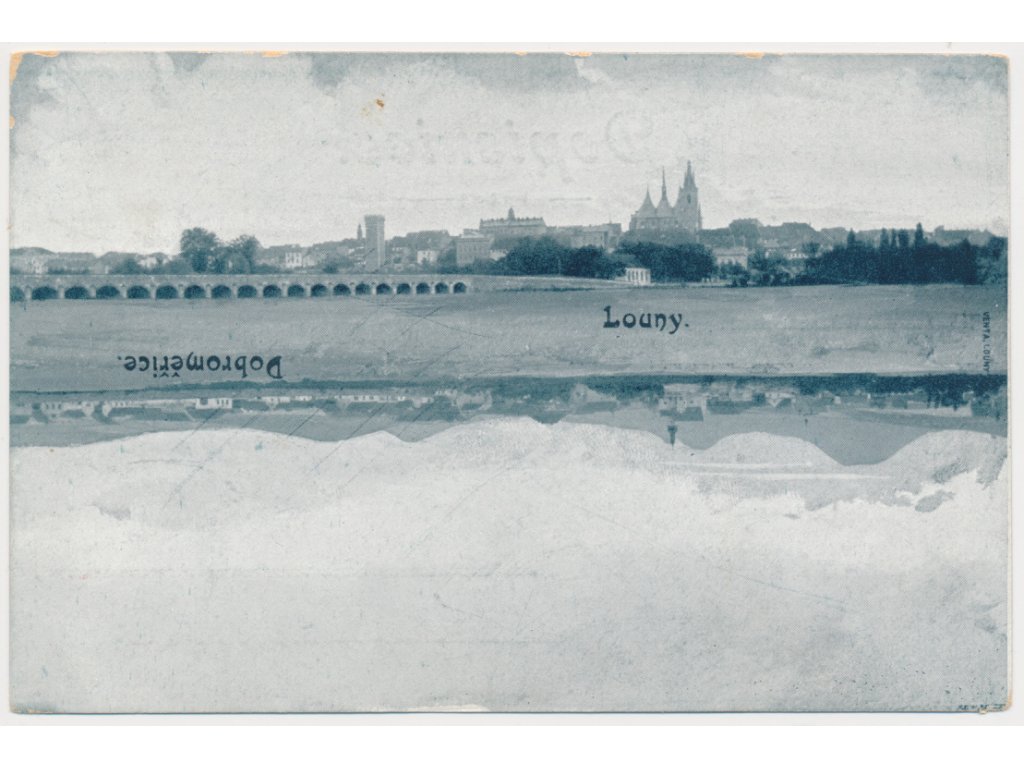 34 - Louny, Dobroměřice, 2 záběrová koláž s celkovými pohledy, cca 1909