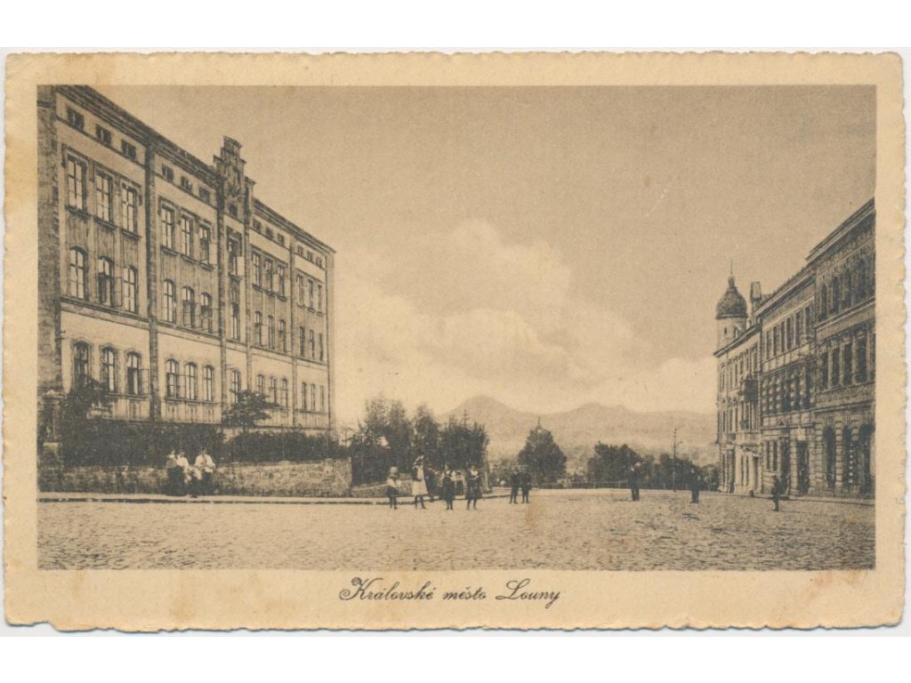 34 - Louny, oživené náměstí, nákl. J. Trunečka, cca 1920