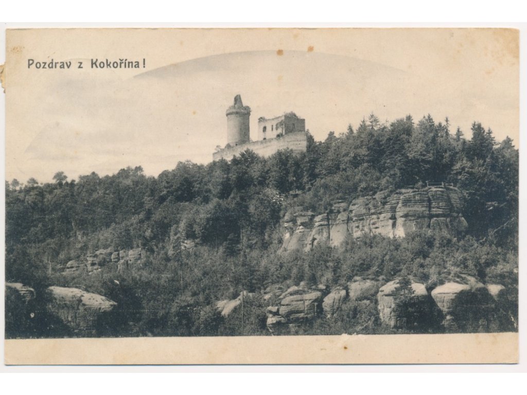 35 - Mělnicko, Kokořín, pohled na hrad a podhradí, cca 1909