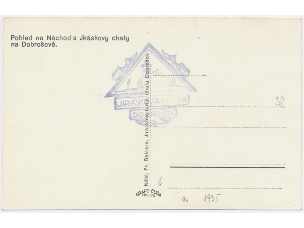 38 - Náchod, pohled z Jiráskovy chaty na Dobrošově, grafo Čuda, cca 1935