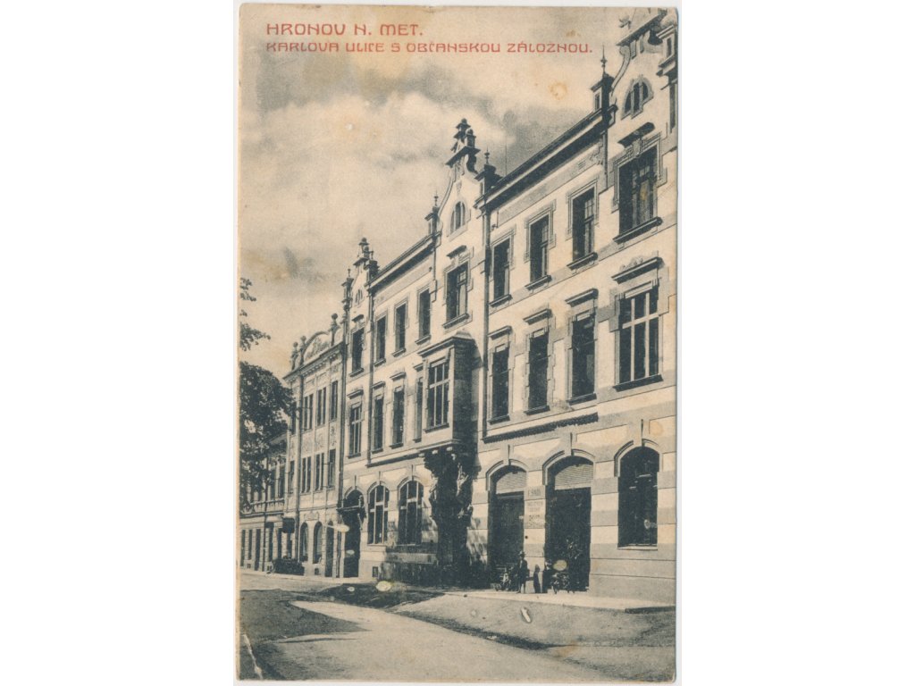 38 - Náchodsko, Hronov, Karlova ul., oživená partie před záložnou, 1900