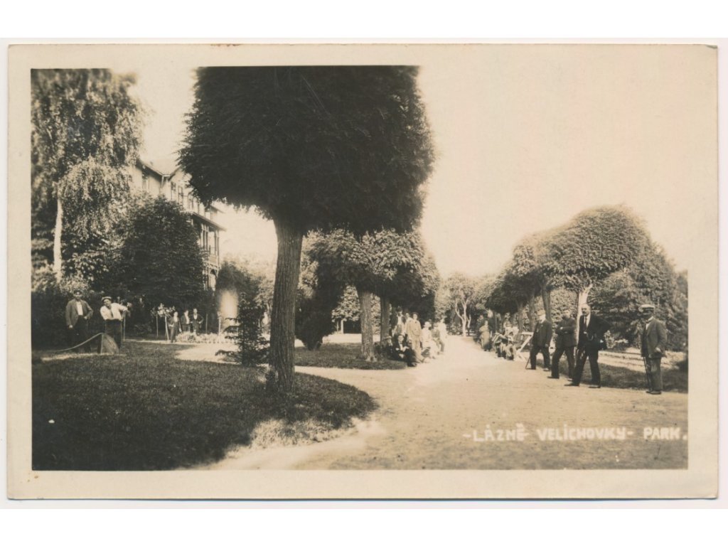 38 - Náchodsko, Lázně Velichovky, oživená partie z parku, cca 1929