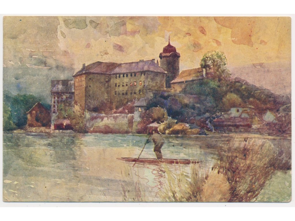 40 - Nymbursko, Poděbrady, oživený pohled na zámek od Labe, cca 1920