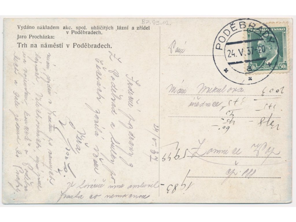 40 - Nymbursko, Poděbrady, oživený trh na náměstí, J. Procházka, 1937
