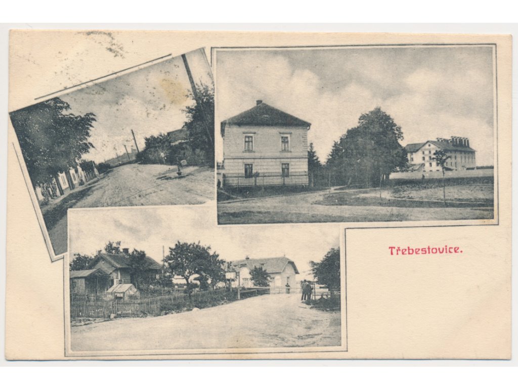 40 - Nymbursko, Třebestovice, 3 okénková koláž, partie z obce, cca 1914