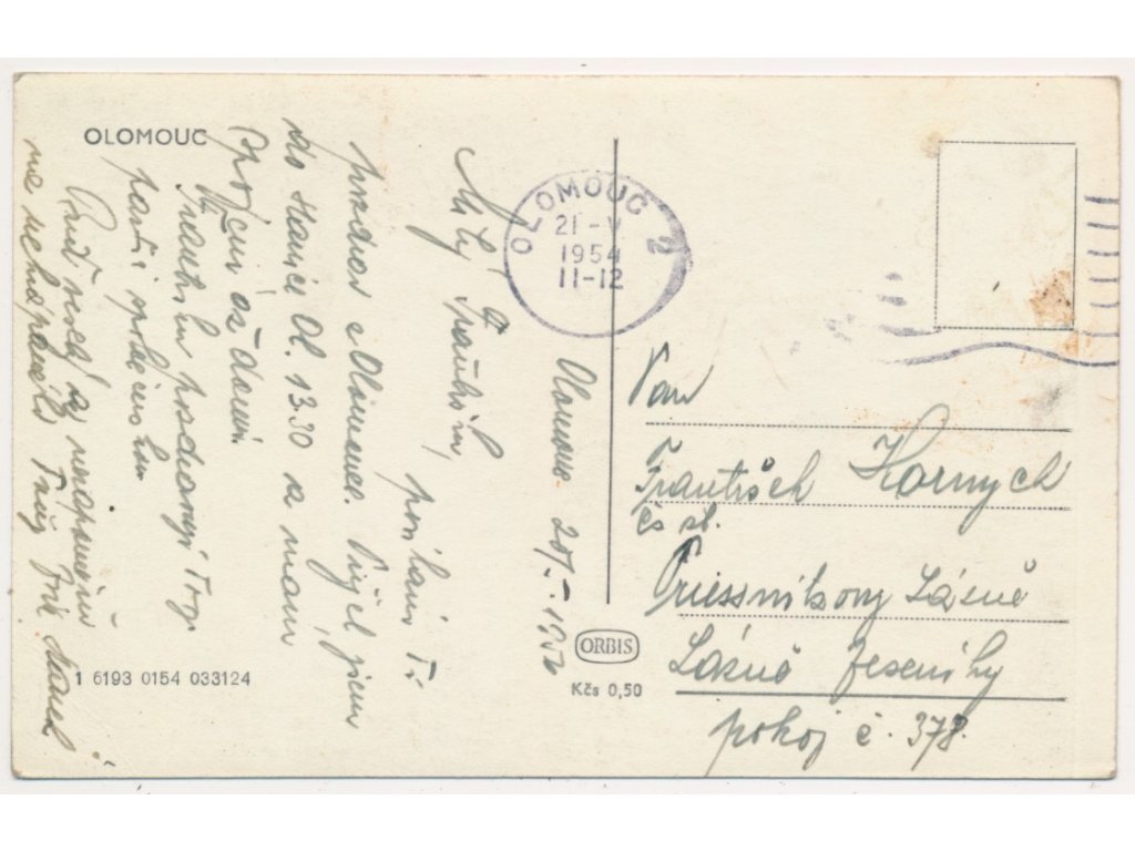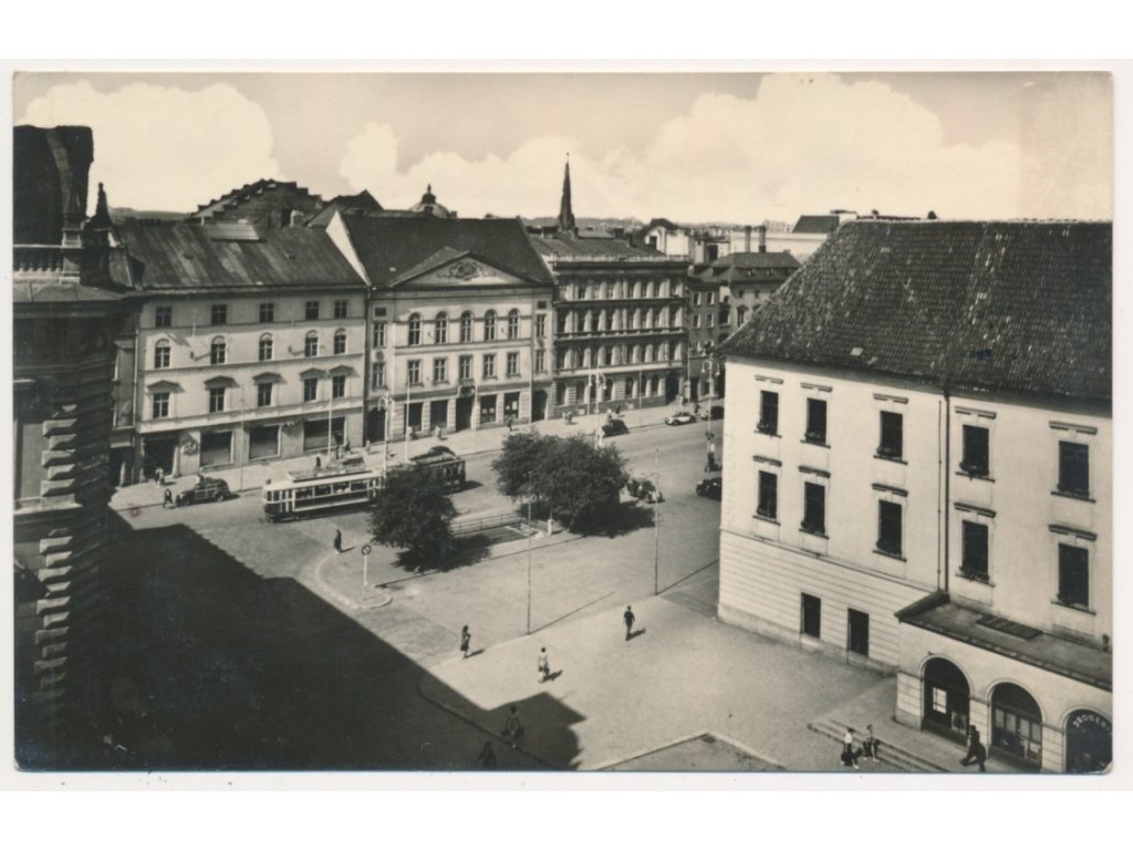 41 - Olomouc, oživená partie z centra města, tramvaj, automobily..., 1954
