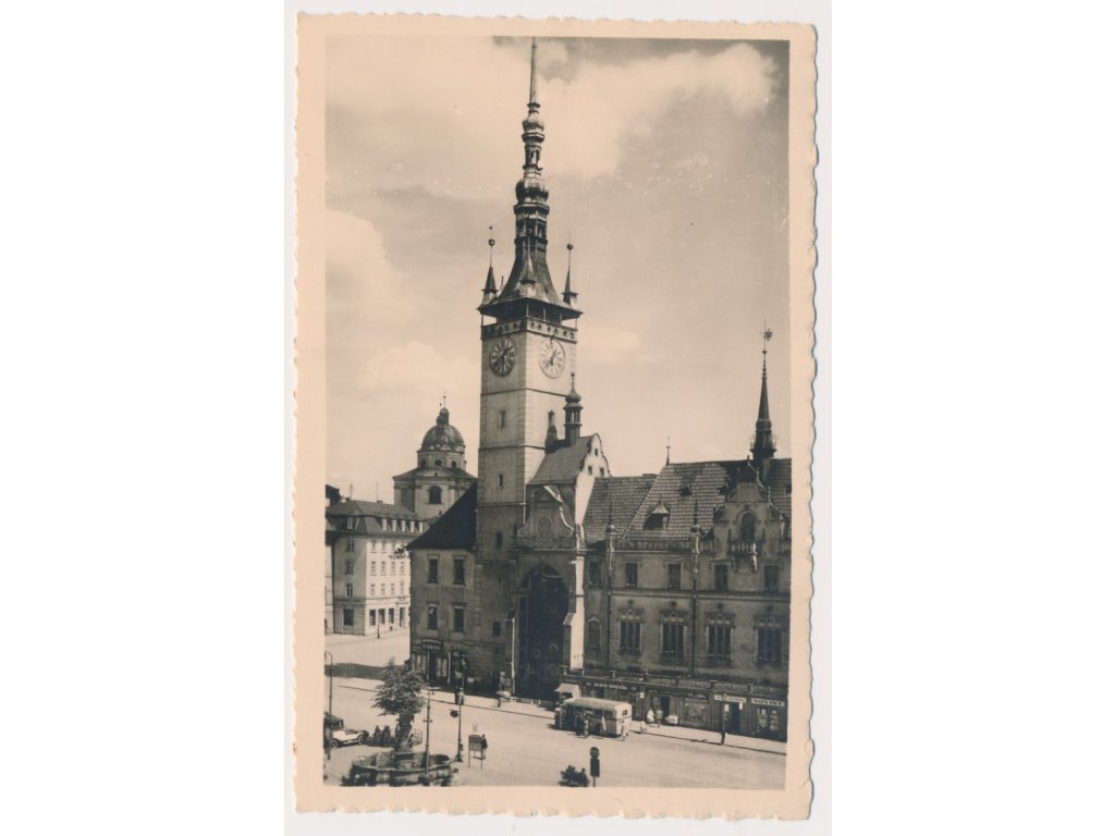 41 - Olomouc , Radnice, oživená partie s automusem, cca 1939