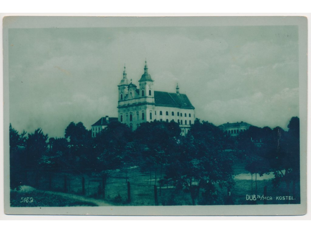 41 - Olomoucko, Dub nad Moravou, pohled na kostel, cca 1934