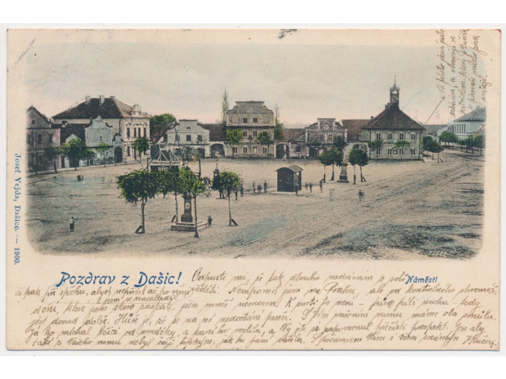 44 - Pardubicko, Dašice, pohled na oživené náměstí, cca 1900