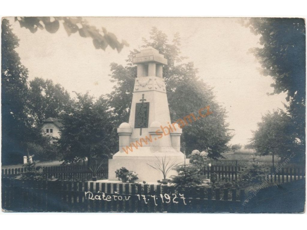 44 - Pardubicko, Starý Mateřov 17. 7. 1927, pomník padlých, cca 1930