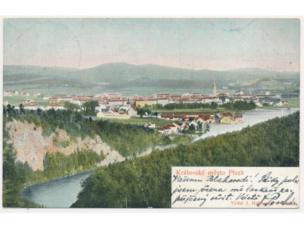 46 - Písek, celkový pohled na město, cca 1900, vada - lom