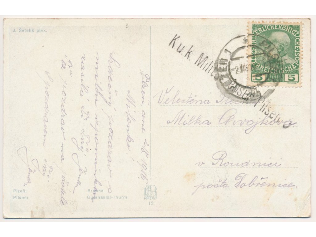 47 - Plzeň, budova gymnázia a okolí, J. Šetelík, cca 1916