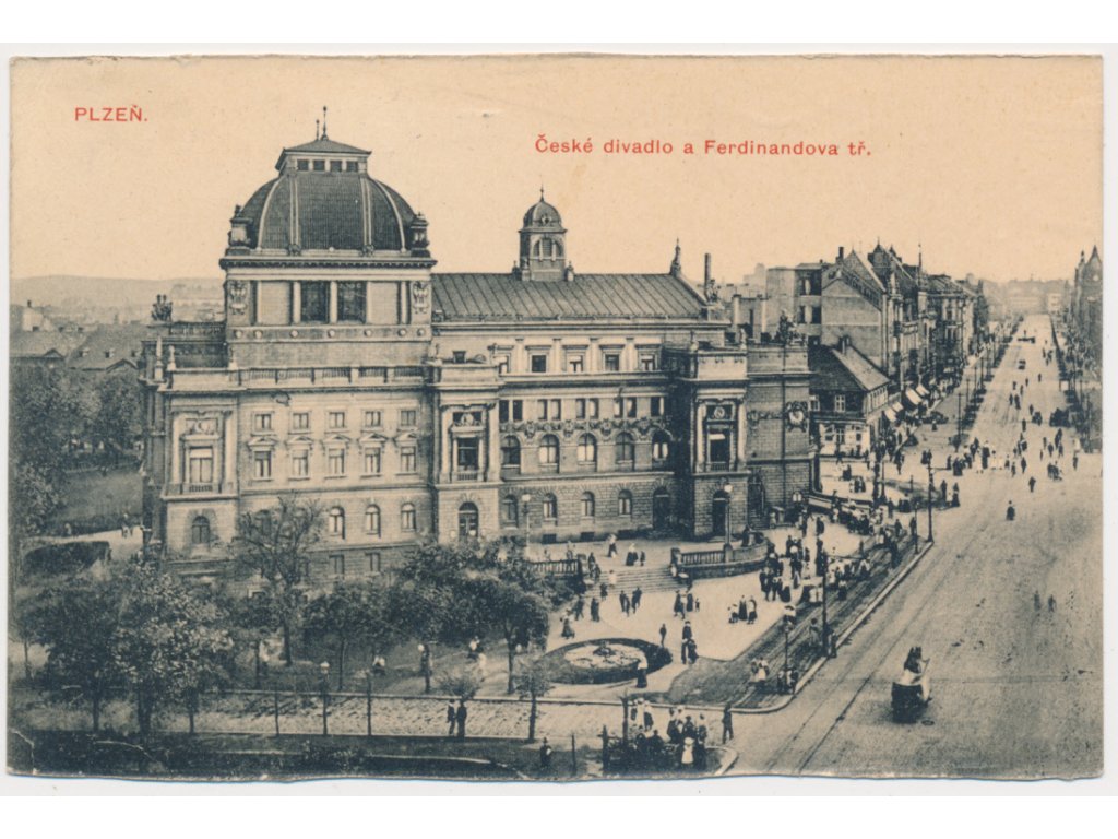 47 - Plzeň, České divadlo a oživená Ferdinandova třída, cca 1911