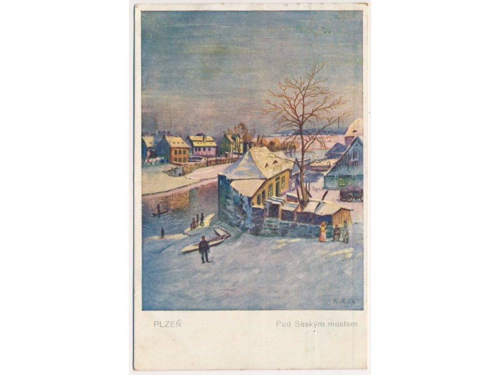 47 - Plzeň, Pod Saským mostem, dle ak. mal. K. Maška, cca 1916
