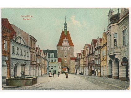 47 - Plzeň, pohled na náměstí s městskou zelení, cca 1945