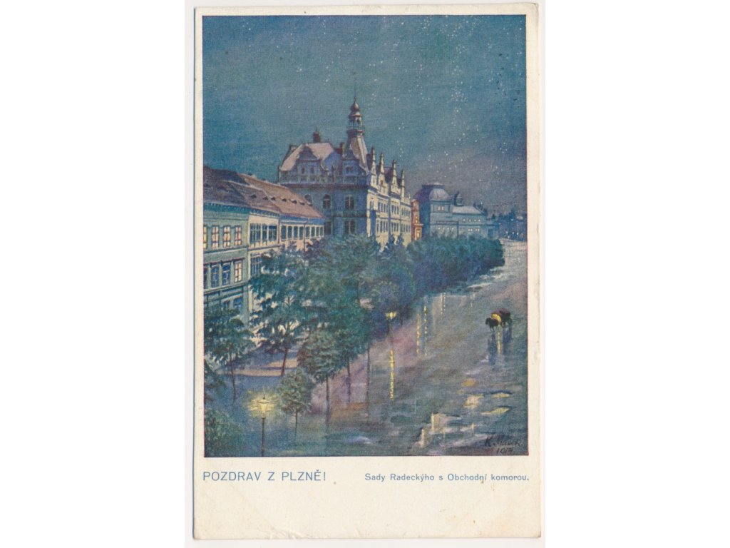 47 - Plzeň, Sady Radeckýho s Obchodní komorou, cca 1916