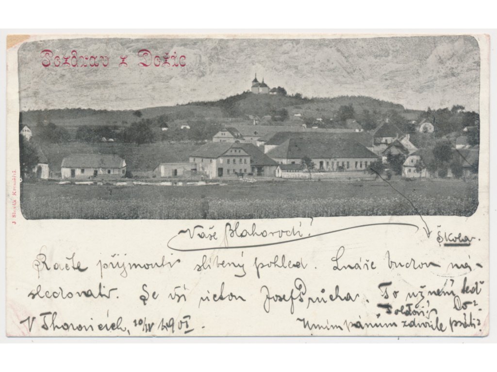 47 - Plzeňsko, Dožice, celkový pohled, prošlá poštou 1901