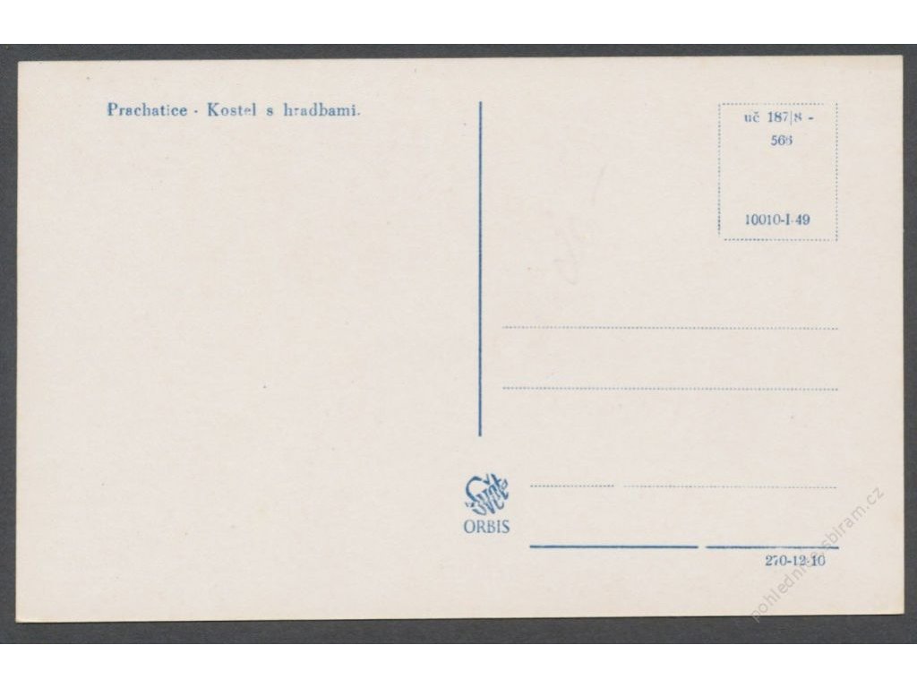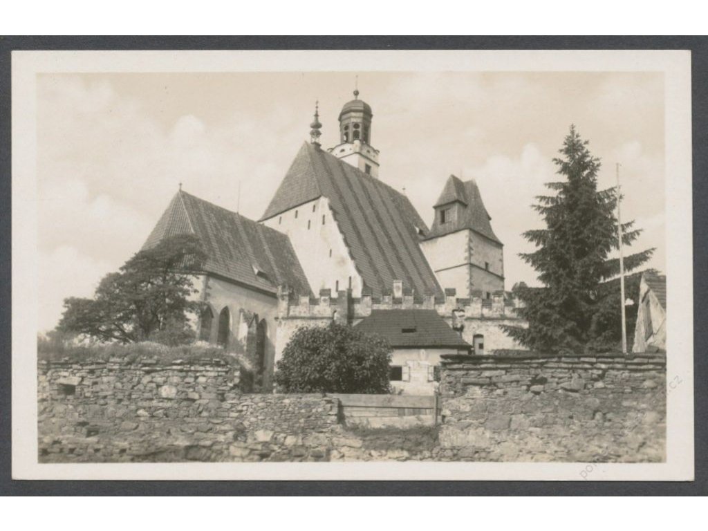 48-Prachatice, Kostel s hradbami, Orbis, cca 1947
